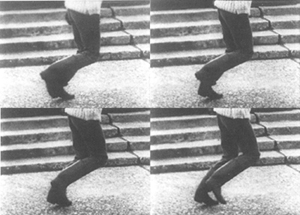 WALKING DANCE FOR ANY NUMBER (1968, 12 minutes, 16mm, b&w) This Intermedia performance, which premiered at the NYU Theater in 1968, is for two to ten dancers and four 16mm films running simultaneously. Each dancer is provided with a dance score based on walking, which relates to the film images, within which they are free to improvise. |